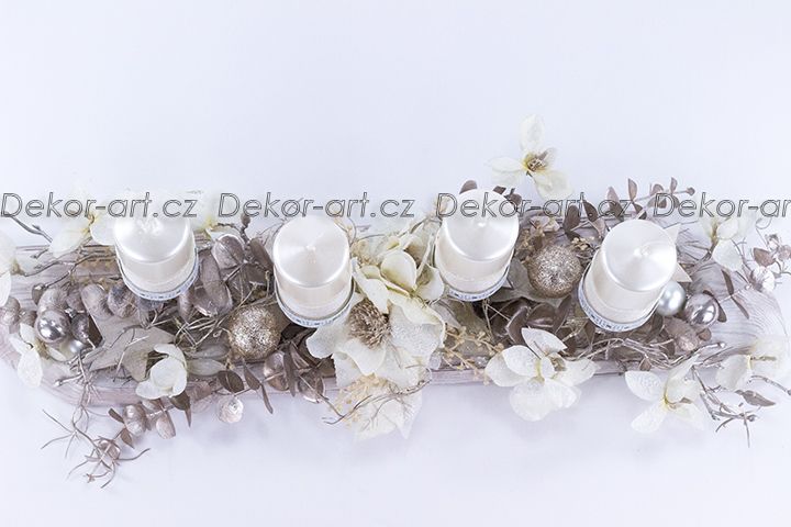 víceLuxusní adventní svícen s magnoliemi a LED osvětlením – šampaň & bílá