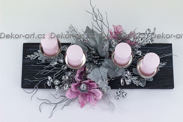 Adventní svícen v jemném šedém a růžovo-stříbrném tónu je dokonalou volbou pro milovníky moderní, elegantní a nadčasové vánoční výzdoby.