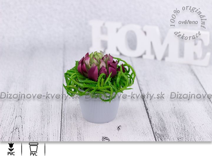 - světle šedý květináč s dekorem, materiál pvc, top kvalita umělých sukulentů, výplň dřevěný chips - odstín hnědá patina