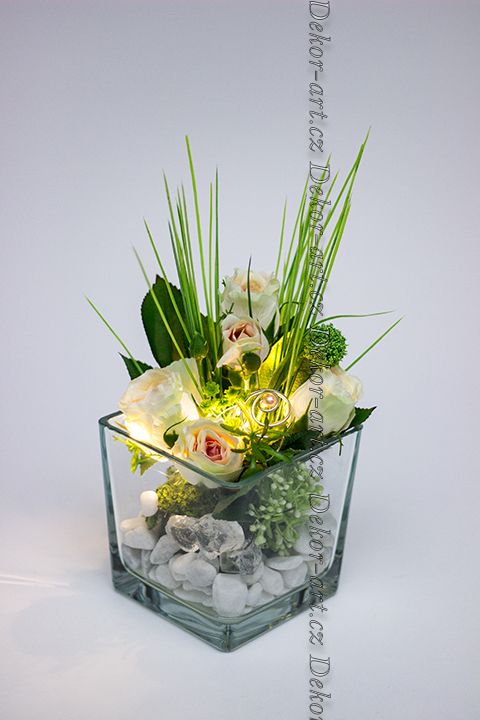 Květinové aranžmá s hedvábnými růžemi a LED světlem