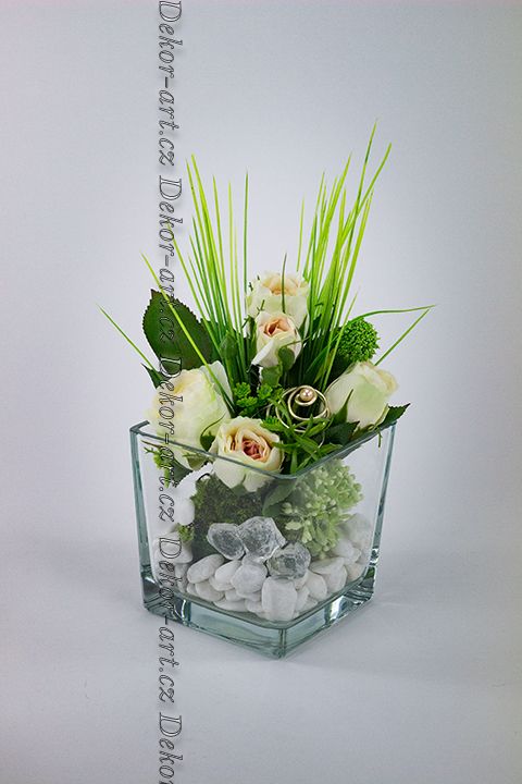 Romantické květinové aranžmá s hedvábnými růžemi v jemných krémově - oranžových tónech, zasazené do masivní skleněné vázy. Doplněno umělou zelení, dekorační trávou, realistickou imitací mechu a elegantním zlatým detailem s perlou - imitace. Součástí je LED osvětlení s teplým bílým světlem, díky kterému je dekorace ideální jako valentýnská i celoroční bytová dekorace.