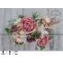 Tato nádherná květinová dekorace v rustikálním dřevěném truhlíku s dekorem lučního kvítí vnese do interiéru nádech romantiky a jemné elegance. Dominují jí hedvábné pivoňky a růže s autentickým sušeným vzhledem, které se prolínají s něžnými květy ranunculusu. Jemná pastelová paleta růžových a krémových tónů, doplněná o sušinu, vytváří harmonickou a něžnou dekoraci ve vintage stylu. Celkový dojem doplňují krásní bílí motýlci, kteří dekoraci dodávají lehkost. Perfektní volba pro romantické duše a milovníky nadčasové elegance.