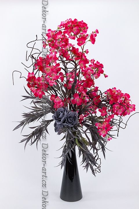 Dominantou je konická černá váza s leskem. Spojuje moderní tvar, eleganci dekorace připomínající strom plný květů. Tato váza s květy třešní spojuje nadčasový moderní design, hodí se jako stylový doplněk do obývacího pokoje, kanceláře i recepce.
