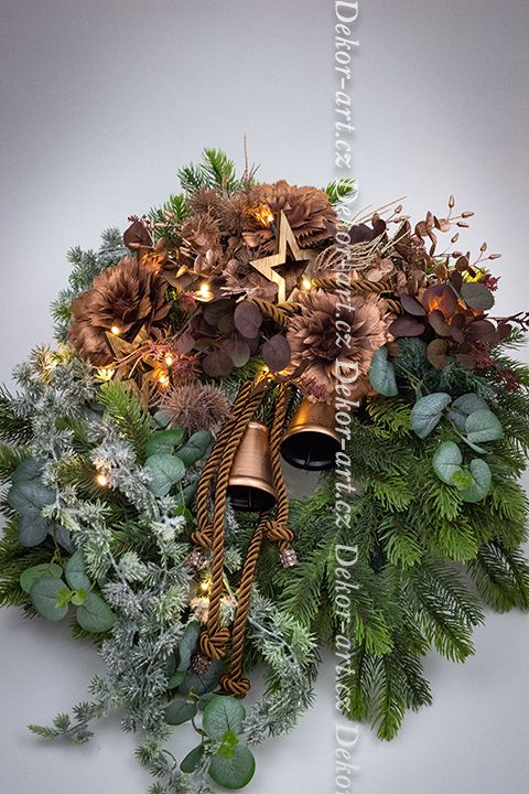 Vytvořte si doma hřejivou vánoční pohodu s tímto velkým adventním věncem je zdobený umělou jedlí, vánočním cedrem a větvičkami eukalyptu v přírodních i bordó podzimních odstínech. Elegantní měděné odstíny.